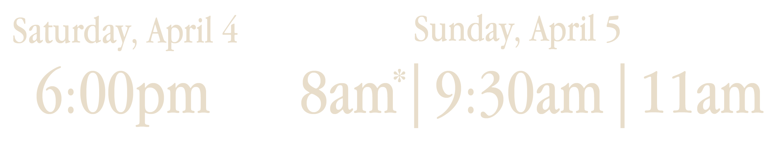 *8am gathering: only Nursery - Kindergarten | 6pm / 9:30am / 11:00am: all kids spaces available